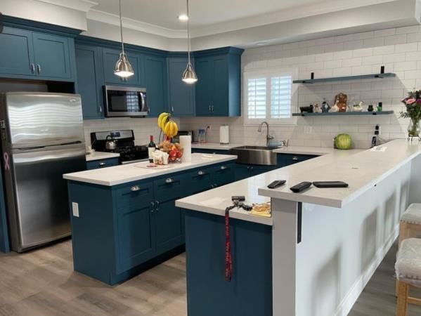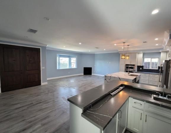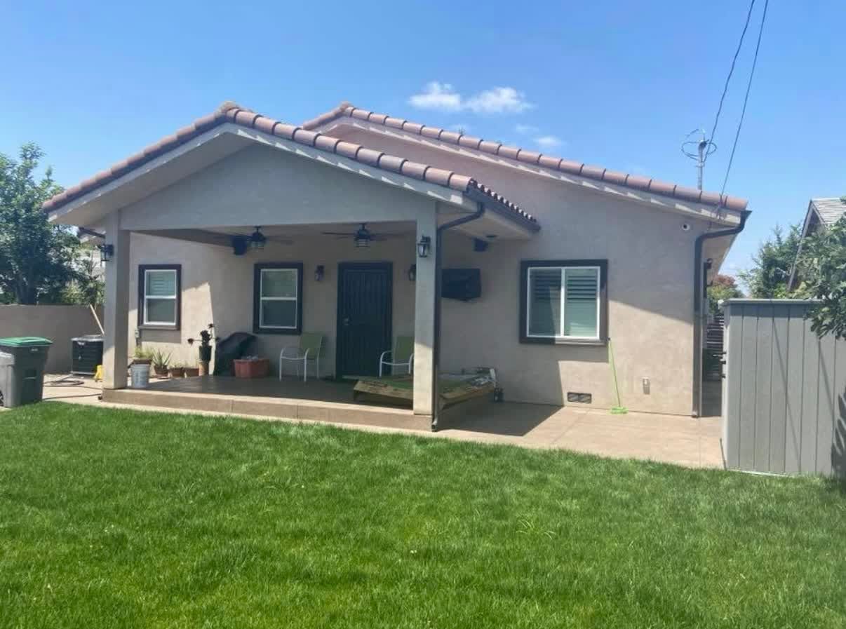 Home includes custom kitchen , custom restrooms , smooth stucco , patio with surround sounds and integration sound with Alexa in the home ??